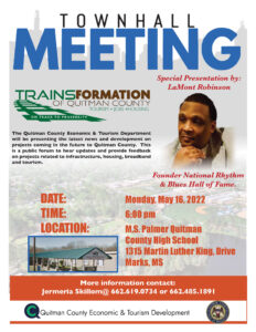 Read MoreThe Quitman County Economic & Tourism Department will be presenting the latest news and development on projects coming in the future to Quitman County. This is a public forum to hear updates and provide feedback on projects related to infrastructure, housing, broadband, and tourism. TrainsFormation of Quitman County Town Hall Meeting Monday, May 16, 2022 6:00…